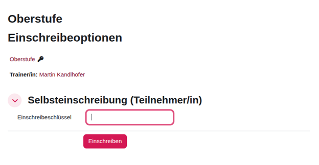 8. Den Einschreibschlüssel eingeben (den erhältst du von deinem Lehrer):